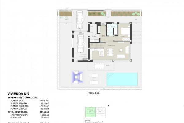 NYBYGGEDE VILLAER I TORRE DE LA HORADADA Eksklusivt boligområde med 2 luksusvillaer med havudsigt på stranden "Las Higuericas" i Torre de la Horadada. Hver villa har uafhængig adgang fra de omkringliggende gader, da der ikke er nogen tilstødende bygning. Gader med lav trafik med store grønne områder omkring boligen, disse aspekter er ideelle for unge familiemedlemmer. Villaerne har en grund på 336m² eller 338m² og et bebygget areal på 211m². Villaerne er bygget med tre soveværelser; det er dog også muligt at bygge dem med 4 soveværelser. Et af soveværelserne er udført med et færdigt badeværelse. Køkkenet er fuldt færdigt, med materialer af høj kvalitet valgt af ejeren, herunder hvidevarer. Efter et åbent koncept er spisestuen omgivet af store vinduer, der giver en kilde til behageligt dagslys, med direkte adgang til swimmingpoolen og færdige haver med belysning, vanding og lokal vegetation. Takket være designet og den indvendige fordeling opnås der i alle villaer et mikroklima, der strækker sig til hvert enkelt opholdsrum. Desuden opnås der med den termiske og akustiske isolering en harmonisk og behagelig atmosfære. Alt dette betyder, at villaen er bæredygtig og respekterer miljøet. Udvalgt finish med materialer af højeste kvalitet, skræddersyet luksusdesign og maksimal komfort kombineret med varm og kold aircondition i alle områder betyder, at man kan nyde villaen både om sommeren og om vinteren, så man kan bo her hele året rundt. Uden at glemme en overdækket garage og parkering med uafhængig indgang til 2 biler. Torre de la Horadada ligger syd for Alicante på en smuk beliggenhed ved kysten. De smukke strande i Torre de la Horadada og Mil Palmeras har fint sand smuk promenade. Der er masser af restauranter, barer og butikker, også vandsport, dykning og snorkling. Det er godt forbundet kun 40 minutter fra Alicante og Murcias Corvera lufthavne, med store kommercielle indkøbscentre og flere golfbaner alle inden for rækkevidde.