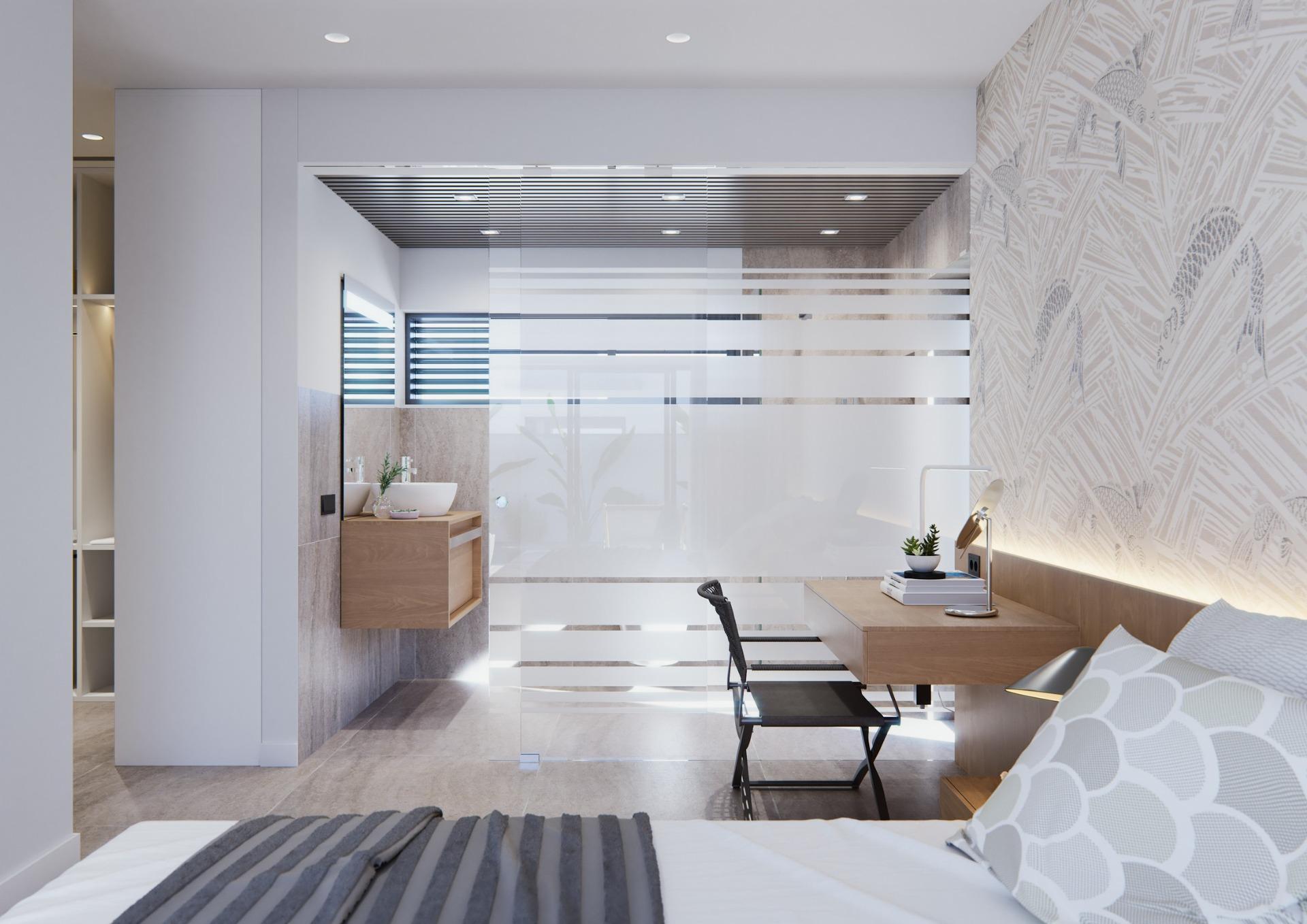 NEW BUILT VILLA ON A FLOOR Three exclusive villas in a residential area in San Javier with 600 m2 of plot and 217 m2 of built area on one floor, private pool and large garden areas. Residential with an architectural design based on clear, cubic and functional lines in an exclusive residential enclave in San Javier (Murcia). Automated garden and garage access doors with infrared remote control. Large covered garage for two vehicles with separate entrance. Gardens with a water drainage system on the floor, completely finished and customizable including vegetation, irrigation and lighting.