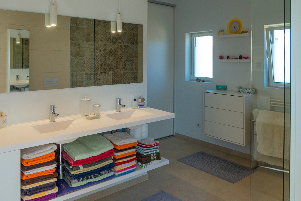 - Hochwertige Fliesen in Bädern und Toiletten sowie Feinsteinzeugfliesen im Rest des Hauses.