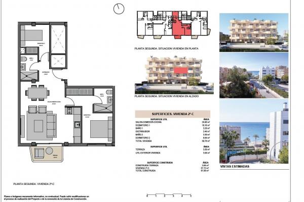 New Build Apartments with Sea Views in Muchavista, El Campello Exclusive Coastal Living Steps from the Beach Discover a boutique residential building located less than 200 m from Muchavista Beach in El Campello, one of the most sought after coastal areas on the Costa Blanca North. This modern development consists of only 14 apartments and penthouses with 2 and 3 bedrooms, designed to offer comfort, style and a strong connection with the Mediterranean lifestyle. Muchavista is known for its wide sandy beach, calm atmosphere and excellent services, making it ideal for both year round living and holiday use. Modern Design with Spacious Terraces and Sea Views All homes have been carefully designed to maximize natural light and sea views from upper floors. Open plan layouts combine the living dining area with a modern integrated kitchen, creating bright and functional spaces. Ground floor apartments enjoy private gardens, middle floor homes feature terraces with views to the sea, and penthouses offer private rooftop solariums, perfect for relaxing or entertaining under the Costa Blanca sun. The architectural concept prioritizes clean lines, contemporary aesthetics and high quality materials, ensuring durability, comfort and an elegant finish throughout the building. High Quality Specifications and Energy Efficiency Each apartment is delivered with premium features designed for modern living. Homes include ducted air conditioning fully installed, electric shutters, a reinforced security entrance door and hot water production through an efficient aerothermal system. Kitchens are fully furnished and equipped with appliances, offering a practical and stylish environment for daily life. Parking space and storage room are included with every property, adding extra convenience and value. Energy efficiency and sustainability have been key elements in the design, providing long term comfort and reduced energy consumption. Communal Areas Designed for Relaxation The communal spaces are conceived as an extension of your home. Residents can enjoy a beautiful swimming pool and landscaped garden areas, creating a peaceful environment just moments from the sea. These shared areas are ideal for relaxing, socializing or simply enjoying the Mediterranean climate throughout the year. Prime Location in El Campello Muchavista Beach is located less than 0.2 km from the development, offering easy access to long walks, water sports and seaside restaurants. The center of El Campello is approximately 2 km away, while Alicante city center is around 12 km. Alicante Elche International Airport is located at approximately 25 km. Several golf courses such as Alicante Golf can be reached in about 7 km, and the marina of El Campello is just 3 km away. Your Mediterranean Home Awaits These new build apartments in Muchavista offer an exceptional opportunity to enjoy sea views, modern comfort and a prime coastal location. Contact us today to receive more information or arrange a private viewing and secure your place by the Mediterranean.