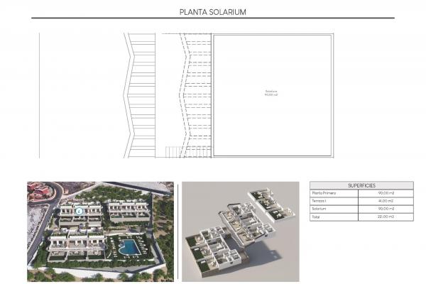 NEW BUILD RESIDENTIAL COMPLEX IN FINESTRAT New Build unique and exclusive high standing residential complex in Balcon de Finestrat. This complex of modern bungalows with 2 and 3 bedrooms, all with 2 bathrooms, open plan kitchen with the living and dining room. Top floor bungalows with private solarium and ground floor bungalows with private garden and possibility of private pool at an extra cost. Properties has loads of natural light and designer island in the kitchen. Lift in all homes. Sustainable construction with energy certificate A. Each property has private parking. Indoor Fitness Gym. Bio-healthy area for sports. Communal swimming pool. Indoor and outdoor LED lighting pack. High quality materials and brands. The properties have access to a large swimming pool and enjoy one of the best locations on the Costa Blanca. It is a great opportunity and privilege to be able to live with this environment of golf and beach, close to all amenities of all services considered one of the best places to invest. Finestrat located in the Marina Baixa region of the Costa Blanca. Benidorm is just a five-minute drive from the properties and offers all the services you would need including shops, bars, restaurants, supermarkets, banks, pharmacies and several private international schools. Close to the beaches of Levante, Poniente and Cala de Finestrat, with more than 6km in length that are among the best in Europe awarded by the European Union with Blue Flags. All leisure services such as the theme parks of Aqua Natura, Terra Mítica, Terra Natura, Aqualandia and Mundomar, Sierra Cortina and Villaitana Golf courses, hiking and climbing in Puig Campana an incomparable natural setting or enjoy of nautical sports. Distance to the sea 4 km, to the airport 26 km and to the golf 1km. Complex located 40 minutes from Alicante airport.
