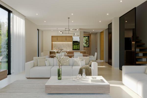 NEW BUILD VILLAS IN FINESTRAT New Build residential of 9 villas in Finestrat, in Sierra Cortina – one of the best urbanizations on Costa Blanca. Residential consist of 4 different types of dwellings adopted from the needs of clients. Some of the models comes build over 1 or 2 floors, with underbuild , solarium. All villas has 3 bedrooms, 2 or 3 bathrooms, open plan kitchen with lounge, build-in wardrobes, air conditioning and aerothermal, equipped kitchen, private garden with pool and parking. Residential located in the Sierra Cortina resort complex, next to two golf courses, theme parks, a large shopping centre and a few minutes from the beaches of Benidorm. Finestrat located in the Marina Baixa region of the Costa Blanca, close to neighbouring Benidorm and about 40 kilometres from the city of Alicante and the international airport. The village is situated on the mountainside of Puig Campana and offers beautiful views of the mountains, the coast and the Mediterranean Sea.