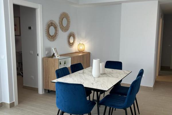 Distribuido en 3 dormitorios y 2 baños, amplio salón-comedor y cocina totalmente equipada con barra de desayuno y terraza con vistas al mar.