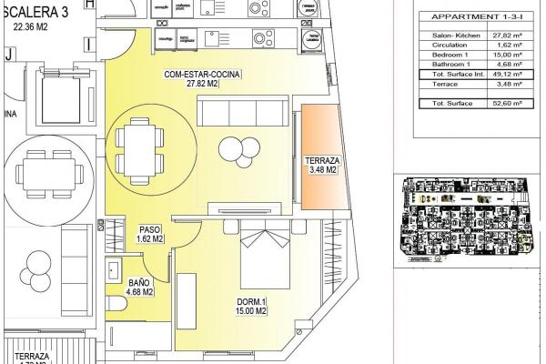 Modernos apartamentos de nueva construcción en el centro de San Miguel de Salinas Vida contemporánea en un entorno mediterráneo saludable Situada en la encantadora localidad de San Miguel de Salinas, a solo 10 km del mar Mediterráneo, esta nueva promoción residencial ofrece el equilibrio perfecto entre el confort moderno y el entorno natural. La zona es conocida por sus salinas cercanas y su excepcional microclima, considerado uno de los más saludables de Europa. Esta tranquila pero animada localidad permite a sus residentes disfrutar del auténtico estilo de vida mediterráneo, a la vez que se encuentra a poca distancia de tiendas, restaurantes, supermercados y todos los servicios esenciales. San Miguel de Salinas se encuentra ligeramente hacia el interior de la Costa Blanca Sur, lo que ofrece vistas despejadas, aire fresco y fácil acceso a playas, campos de golf y zonas comerciales. Apartamentos elegantes diseñados para ofrecer comodidad y eficiencia El proyecto consta de dos modernos edificios separados por una zona ajardinada comunitaria. Hay un total de 56 apartamentos contemporáneos disponibles con 1, 2 o 3 dormitorios, cada uno con terraza privada. Todas las viviendas han sido diseñadas pensando en la comodidad, la estética y la eficiencia energética, utilizando materiales de alta calidad y modernos sistemas de aislamiento. Cada apartamento incluye: Puerta de entrada blindada Cuartos de baño con tocadores Preinstalación de aire acondicionado por conductos Certificado energético de clase A La distribución y orientación de las viviendas garantizan la luz natural durante todo el día, creando interiores luminosos y acogedores, ideales tanto para vivir de forma permanente como para pasar las vacaciones. Excepcionales zonas comunes para el relax y la vida social La zona común de la planta baja está diseñada como el corazón social de la urbanización, rodeada de jardines, zonas de descanso, aparcamiento para bicicletas y un parque infantil. Es un punto de encuentro ideal para residentes de todas las edades. En la azotea, le espera una impresionante zona de ocio de 350 m2. Este espacio incluye una piscina de 70 m2 con una zona separada para niños, pérgolas, tumbonas y zonas de sombra, lo que permite a los residentes relajarse mientras disfrutan de unas vistas panorámicas. Se puede acceder fácilmente a la azotea mediante uno de los tres ascensores y cuenta con instalaciones sanitarias para mayor comodidad. Excelente ubicación cerca de los principales puntos de interés Playas mediterráneas a 10 km Centro comercial Zenia Boulevard a 9 km Villamartin Golf a 6 km Las Colinas Golf a 8 km Puerto deportivo de Torrevieja a 12 km Aeropuerto de Alicante a 60 km Aeropuerto de Murcia Corvera a 55 km Una inversión inteligente en la Costa Blanca Sur Este complejo residencial combina una arquitectura moderna, acabados de calidad y una ubicación céntrica privilegiada, lo que lo convierte en una excelente opción para vivir, disfrutar de las vacaciones o invertir en alquiler. Póngase en contacto con nosotros hoy mismo para obtener más información o concertar una visita a estos modernos apartamentos en San Miguel de Salinas. 247