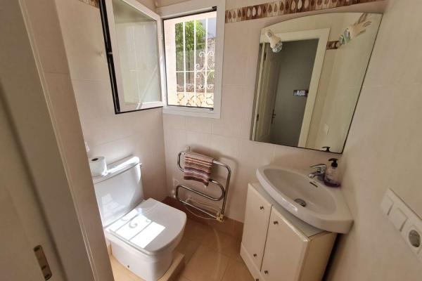 El exterior cuenta con bonitos jardines de estilo mediterráneo con diversos árboles frutales y palmeras. La terraza principal cuenta con una amplia cocina de verano con pérgola y una piscina de 8x4 m con ducha. Garaje de buen tamaño con estacionamiento adicional en la entrada para 2 autos más.