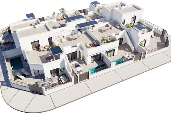 RYNEK PIERWOTNY BUDYNEK MIESZKALNY W TORRE-PACHECO Rynek Pierwotny osiedle 8 kamienic i czworaków zlokalizowane w Torre-Pacheco Nowoczesne nieruchomości z 2 sypialniami i 2 łazienkami, kuchnią na otwartym planie z salonem, wbudowanymi szafami, tarasem, prywatnym solarium, ogrodem z basenem i miejscem parkingowym. Te ekskluzywne domy zostały zaprojektowane z eleganckimi i funkcjonalnymi wnętrzami, w pełni wyposażonymi kuchniami i urządzeniami elektrycznymi. W łazienkach znajduje się toaletka z umywalką i oświetleniem. W sypialniach znajdują się szafy z szufladami, a każda nieruchomość ma wstępną instalację klimatyzacji kanałowej. Zewnętrzne elementy są nie mniej imponujące, w tym prywatny basen i duże solarium z letnią kuchnią, dzięki czemu można cieszyć się słońcem przez cały rok. Ponadto nieruchomości mają wstępną instalację do ładowania samochodów elektrycznych. Położony obok Club de Golf, Torre Pacheco, gdzie znajdują się wszystkie udogodnienia, w tym bary, restauracje, supermarkety i banki oraz 15 minut jazdy samochodem do pięknych plaż Mar Menor. Torre Pacheco otoczone jest nagradzanymi polami golfowymi, a cały region uważany jest za jedno z najzdrowszych miejsc w Hiszpanii. Ta idealna lokalizacja zapewnia o wiele więcej za swoje pieniądze. W odległości spaceru od lokalnych udogodnień oraz wielu barów i restauracji. Pobliska sieć autostrad umożliwia szybkie i łatwe podróżowanie do innych obszarów. Międzynarodowe lotnisko w Murcji oddalone jest o 20 minut.
