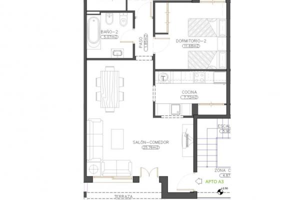 Tradycyjne domy z dwiema sypialniami w dzielnicy Barrio Herrerias w Almerii z solarium i basenem wspólnotowym Nowoczesne życie w pobliżu wybrzeża Almerii Ta nowa inwestycja mieszkaniowa znajduje się w spokojnej dzielnicy Barrio Herrerias, zaledwie 4 km od pięknych plaż Villaricos. Okolica łączy w sobie spokojną atmosferę mieszkaniową z dogodnym dostępem do niezbędnych usług, lokalnych sklepów i uroczych nadmorskich miasteczek prowincji Almeria. Dzięki doskonałym połączeniom drogowym mieszkańcy mogą cieszyć się zarówno spokojem życia w głębi lądu, jak i atrakcjami śródziemnomorskiego wybrzeża. Wybór 13 domów Osiedle składa się z 13 dobrze zaprojektowanych domów z 2 sypialniami i 2 łazienkami, z których jedna jest łazienką przy sypialni. Nabywcy mogą wybierać między nieruchomościami na parterze z prywatnym patio lub lokalami na wyższych piętrach z tarasem. Należy pamiętać, że budynek nie posiada windy, oferując bardziej tradycyjny styl życia w niskiej zabudowie. Wszystkie domy posiadają prywatne solarium na dachu, idealne do opalania się, relaksu lub podziwiania widoków na okolicę. Komfortowe wnętrza i wysokiej jakości wykończenia Każda nieruchomość jest wyposażona w pełni umeblowaną kuchnię wraz z urządzeniami, instalacją do klimatyzacji kanałowej oraz nowoczesnymi meblami łazienkowymi z lustrami. Zewnętrzna stolarka z wykończeniem imitującym drewno i podwójnymi szybami zapewnia doskonałą izolację i ciepłą, współczesną estetykę. Potrzeby związane z przechowywaniem zaspokaja prywatna komórka lokatorska i miejsce parkingowe znajdujące się w piwnicy. Basen wspólnotowy i relaksujący styl życia Mieszkańcy mogą korzystać ze wspólnego basenu, idealnego do ochłody w ciepłych miesiącach i spotkań towarzyskich z sąsiadami. Układ i projekt obszaru mieszkalnego tworzą komfortowe środowisko zarówno do stałego zamieszkania, jak i do spędzania wakacji. Strategiczne odległości od kluczowych punktów zainteresowania Plaża Villaricos: 4 km Cuevas del Almanzora: 9 km Pola golfowe: 10 do 15 km Marina w Garrucha: 14 km Lotnisko w Almerii: 90 km Dostępna natychmiastowa dostawa Domy są gotowe do zamieszkania, co stanowi fantastyczną okazję dla nabywców poszukujących nowych nieruchomości w pobliżu wybrzeża Almerii. Skontaktuj się z nami już dziś, aby umówić się na oglądanie nieruchomości i zabezpieczyć swoją nową nieruchomość w Barrio Herrerias.