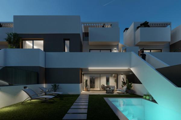 Nybyggda bungalower med privat pool i San Pedro del Pinatar Exklusiva boutique-bostäder nära stranden Denna begränsade kollektion av 12 nybyggda bungalower i San Pedro del Pinatar erbjuder den perfekta balansen mellan modern design, medelhavslivsstil och oslagbart läge. Bara 600 meter från stranden och inom gångavstånd från butiker, restauranger och fritidsanläggningar är dessa bostäder idealiska som semesterbostad, investering eller permanent bostad på Costa Cálida. San Pedro del Pinatar är en charmig kuststad belägen mellan Mar Menor och Medelhavet, känd för sina segelklubbar, naturliga lerbad i Lo Pagán och livliga strandpromenad. Staden har utmärkta förbindelser och ligger bara 30 km från Murcia–Corvera flygplats, 75 km från Alicante flygplats och en kort bilresa från Dos Mares shoppingcenter (5 km) och flera toppgolfbanor inom 10–20 km. Välj mellan trädgårds- eller takvåning Detta boutique-projekt har två noggrant utformade planlösningar: Bungalower på bottenvåningen: Med terrass på framsidan, privat pool, tvättstuga, uteplats på baksidan och parkering på tomten. Takvåningar: Med stor terrass, privat solarium på taket med pool, förråd på bottenvåningen och privat parkeringsplats. Båda modellerna har 2 sovrum och 2 badrum, där det stora sovrummet har ett eget badrum. Det öppna vardagsrummet och matplatsen ansluter smidigt till ett fullt utrustat kök, förstärkt av stora skjutdörrar som fyller interiören med naturligt ljus. Högkvalitativa funktioner för komfort och stil Alla bostäder i detta projekt är byggda med högkvalitativa ytbehandlingar för att säkerställa både elegans och praktiskhet. Viktiga funktioner inkluderar: Fullt utrustat kök med vitvaror (induktionshäll, ugn, diskmaskin, kyl/frys) Förinstallerad luftkonditionering Intern och extern LED-belysning Elektriska fönsterluckor för extra bekvämlighet Badrum utrustade med möbler, speglar och belysning En livsstil vid havet Att bo i San Pedro del Pinatar innebär att njuta av en avslappnad kustatmosfär med alla moderna bekvämligheter i närheten. Marinan, bara 1 km bort, är perfekt för seglingsentusiaster, medan Mar Menors lugna vatten erbjuder möjligheter till simning och vattensporter året runt. Boka din drömbungalow i Costa Cálida Med leverans planerad till mitten av 2027 är detta det perfekta tillfället att säkra ditt nya hem vid havet. Kontakta oss idag för mer information eller för att boka en visning, och börja leva det medelhavsliv du förtjänar.