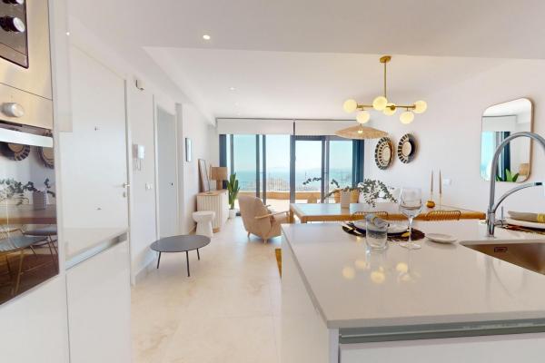HAVETS LYN I DITT HEM !!! 1, 2 och 3 sovrum, takvåningar och duplex med spektakulära terrasser. Först havets linje på en kulle framför Isla del Fraile i Águilas. Dess design och arkitektur är integrerad i skönheten i den naturliga miljön där den finns, respekterar och berikar den. Tack vare sitt höga läge har bostäderna utformats för att få ut det mesta av naturligt ljus och för att erbjuda spektakulär utsikt över Medelhavet från sina stora terrasser. De ädla materialen, användningen av bergets morfologi och den stora mängden vegetation uppnår en perfekt harmoni mellan bostäderna och den naturliga miljön där den ligger. Bostaden ligger i Isla del Fraile Resort, som har sportområden, restauranger och privat säkerhet. Några minuter bort finns kommersiella områden med ett snabbköp, restauranger, biografer och alla tjänster som erbjuds av staden Águilas. Staden Águilas har 28 kilometer kust där det finns 35 stränder med olika typer av sand och tjocklek i olika landskap, från vikar och jungfruliga stränder i naturliga miljöer till stadens stränder i Águilas. Dess varma ökenklimat finns året runt med ett årligt genomsnitt på 22º med milda temperaturer på vintern och mycket varmt på sommaren. Águilas är en perfekt enklav för dykning, vattensporter, vandring och golf.