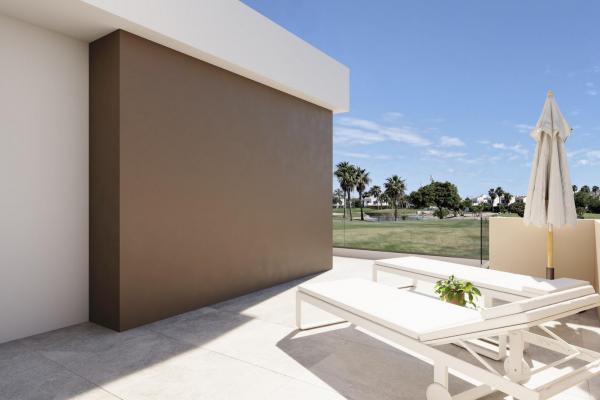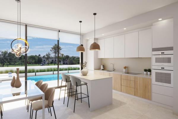 Nybyggda villor vid Roda Golf med privat pool Exklusivt boende vid golfbanan i Costa Cálida Dessa moderna villor i första linjen i Roda Golf (Murcia) erbjuder den perfekta blandningen av lyx, komfort och medelhavsliv. Beläget bara 3 km från Mar Menors gyllene stränder är detta bostadsprojekt idealiskt för golfälskare, vattensportentusiaster och de som söker ett lugnt men ändå välförbundet hem på Costa Cálida. Området är omgivet av service, restauranger, shoppingmöjligheter och idrottsanläggningar, vilket garanterar bekvämlighet i vardagen. Rymliga villor med privata pooler Varje villa är omsorgsfullt utformad i två plan med en total boyta på 140 m². Planlösningen omfattar: 3 sovrum (2 med eget badrum) 3 fullt utrustade badrum Ljust vardagsrum med öppen planlösning och kök Sovrum på bottenvåningen för bekvämlighet Två sovrum på första våningen med direkt tillgång till öppen terrass Njut av livet utomhus med en privat pool, rymlig terrass på bottenvåningen och en solterrass på första våningen med fri utsikt över golfbanan och sol hela dagen. Varje fastighet har också en privat parkeringsplats på tomten och ett stort förråd utomhus. Högkvalitativa detaljer Dessa bostäder är byggda enligt högsta standard och har: Golvvärme i badrummen Motoriserade aluminiumfönsterluckor i alla sovrum Fullt utrustade badrum med möbler, speglar, belysning och duschväggar i glas Moderna kök med vitvaror Förinstallation av luftkonditionering i vardagsrum och sovrum Solpaneler med växelriktare för energieffektivitet Utmärkt läge i Roda Golf Dessa villor ligger i det prestigefyllda Roda Golf & Beach Resort och är omgivna av grönskande fairways och medelhavslandskap. Avstånd till viktiga sevärdheter: Mar Menor-stränderna: 3 km Dos Mares shoppingcenter: 5 km Lo Pagán marina: 6 km Roda Golf Clubhouse: Gångavstånd Murcias internationella flygplats (Corvera): 35 km Alicantes flygplats: 85 km Cartagena stad: 30 km Lev det medelhavska livet Oavsett om det gäller en permanent bostad, en semesterbostad eller en hyresinvestering, erbjuder dessa villor den perfekta kombinationen av elegans, funktionalitet och läge. Kontakta oss idag för att boka en visning och säkra din villa i första linjen vid Roda Golf. Ditt drömhus på Costa Cálida väntar!