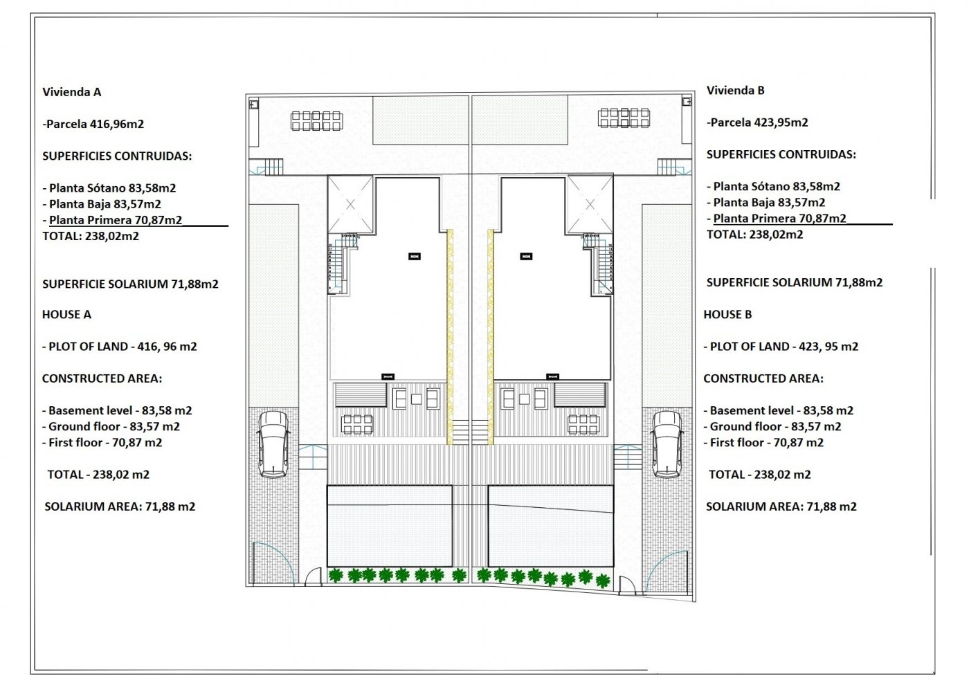 2 NYBYGGDA VILLOR I TORREVIEJA 2 nya vackra villor i Torrevieja. Villorna har 4 sovrum, 4 badrum, öppet kök med vardagsrum, inbyggda garderober, privat trädgård med pool och parkeringsplats, privat solarium och källare. Villor ligger 15 minuters promenad till den berömda Playa de La Mata (5 minuter med bil). Torrevieja är en spansk stad i provinsen Alicante på Costa Blanca. Den är känd för sitt typiska medelhavsklimat och sin kustlinje. Den har strandpromenader med semesterorter längs sina sandstränder. Det lilla havs- och saltmuseet rymmer utställningar om stadens fiske- och salthistoria. I inlandet finns naturparken Lagunas de La Mata-Torrevieja med stigar och två saltlaguner, den ena rosa och den andra grön. Alicantes flygplats ligger 40 minuter bort och Murcias flygplats ca 1 timme bort.